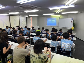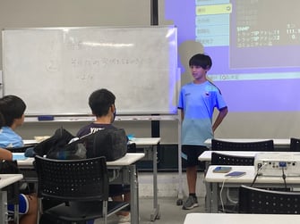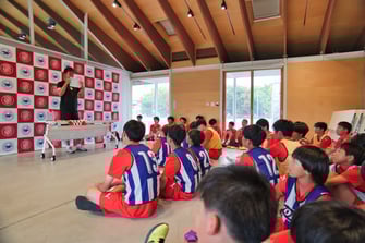 ボールを蹴るだけではなく、サッカーの知識を高めるために座学の時間もあります。理解度を高めるために重要なトレーニングとなります。